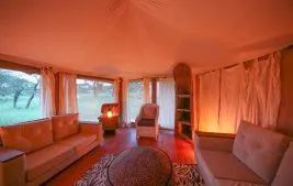 The camp consists of 13 canvas tents, including a family tent that can accommodate up to four people, complete with its own private lounge. Each tent is equipped with en-suite bathrooms, flush toilets, and other essential amenities. The dining area is housed in a separate tent, with the lounge and bar located nearby. All of these areas are just a few steps away, nestled beneath a towering canopy of acacia trees at the front of the camp. Our camp is secure and well-staffed, with personnel available around the clock.