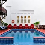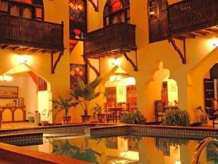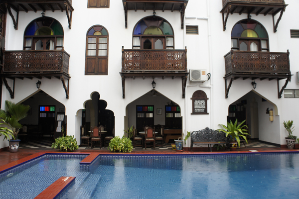 The hotel overlooks the town’s beach, which is suitable for sunbathing and swimming but is lively, public, and less pristine than other Zanzibar beaches. It provides a wonderful setting to observe Stone Town life, particularly during breakfast served at the hotel’s beachside restaurant. For a more relaxing experience, the hotel’s well-maintained courtyard pool offers an ideal spot for a refreshing swim after a day of exploring the warm and bustling streets of Stone Town.