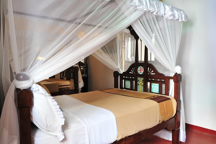 The hotel features 37 rooms of various sizes and levels of comfort, all with en suite facilities. Most rooms include balconies offering views of either the beach or the hotel’s courtyard pool. Decorated and furnished in Swahili style with antique furniture and ornaments, the hotel exudes unique character. However, some beds may be taller or shorter than typical Western standards. Each room is well-equipped by Tanzanian standards, featuring air conditioning, a fridge, satellite television, and a telephone. While some rooms are compact, guests may request a room change during less busy periods. Additional amenities include an internet café, Wi-Fi access, and a laundry service available for an extra charge.