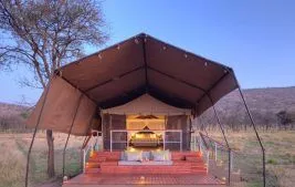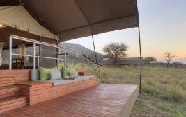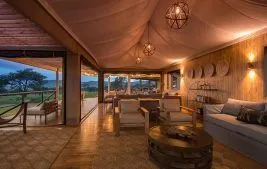 The camp features eight spacious tents overlooking the expansive golden plains of Serengeti National Park. Relax on your private terrace or unwind in the open-sided main tent with a refreshing G&T as you take in the tranquility of your surroundings. Start your day with a breathtaking hot-air balloon ride over the plains and end it with a magical dinner under the stars in the bush.