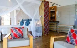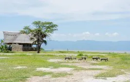 Maramboi is located in a Wildlife Management Area, where you may encounter zebras, giraffes, wildebeests, and impalas on your journey in. This marks the start of your enchanting arrival at this luxurious accommodation on the shores of Lake Manyara, where you are welcomed with a refreshing juice at the reception. From here, you can either walk or take a tuktuk to your spacious, recently renovated room designed for the ultimate experience.