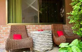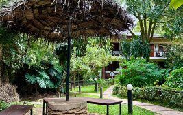 We offer 28 clean and comfortable rooms, each with an en-suite bathroom, satellite TV, safes, fans, mosquito nets, soap, shower gel, shampoo, and kettles with coffee and tea. The rooms include a mix of singles, doubles, twins, triples, and one quadruple. All rooms are set in a garden environment and feature outdoor seating areas. Our accommodations are rustic, focusing on clean, comfortable, and affordable lodging with a unique atmosphere.