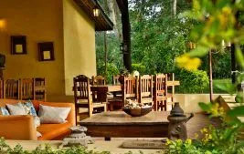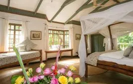 The inn is a delightful country estate that was once an old coffee farm, still holding the nostalgic charm of a beloved homestead. Spanning ten acres of lush greenery, the grounds flow naturally from the sloping foothills of Mt Meru, offering a sanctuary for the local birds and wildlife. Elegant, rustic cottages are scattered along the river and nestled among tall trees, with serene lawns and the soothing sounds of birdsong creating a peaceful and picturesque atmosphere. Located in the heart of an area abundant with nature reserves, montane forests, and vibrant village culture, there are endless opportunities for exploration.