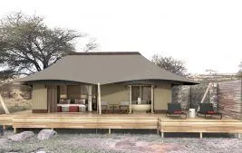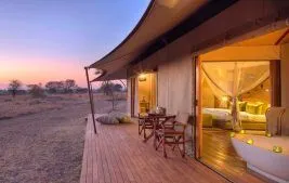 Expansive decks encircle each tent, offering uninterrupted views of the Serengeti, while the bathrooms also provide stunning vistas of the surrounding landscape.